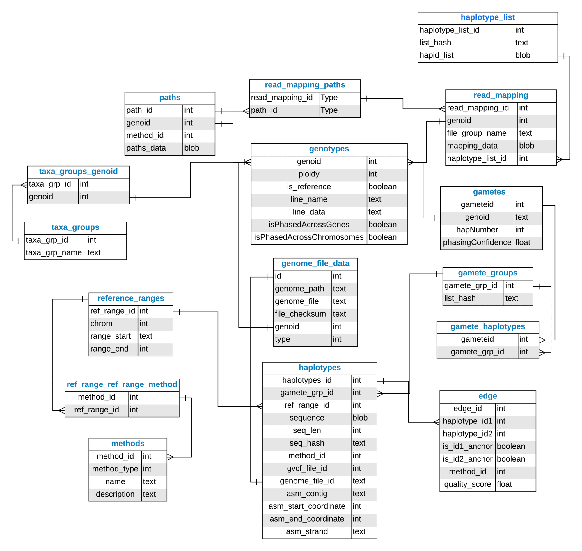 A Practical Haplotype Graph can be used for many types of data processing and analysis. You can build a PHG from genome assembly-quality genomes or whole-genome resequencing data and use it to impute either variants or haplotypes, both for taxa within the database and for new taxa that are not included in the DB. A non-exhaustive list of possible use cases includes: